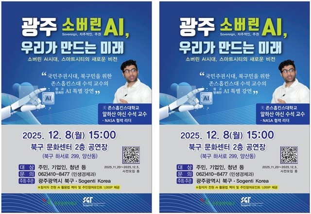 [위키트리 광주전남취재본부 노해섭 기자]광주광역시 북구(구청장 문인)는 오는 8일 오후 3시 북구 문화센터에서 알하산 야신 존스홉킨스대 수석교수 초청 AI 특별강연을 개최한다고 3일 밝혔다.
