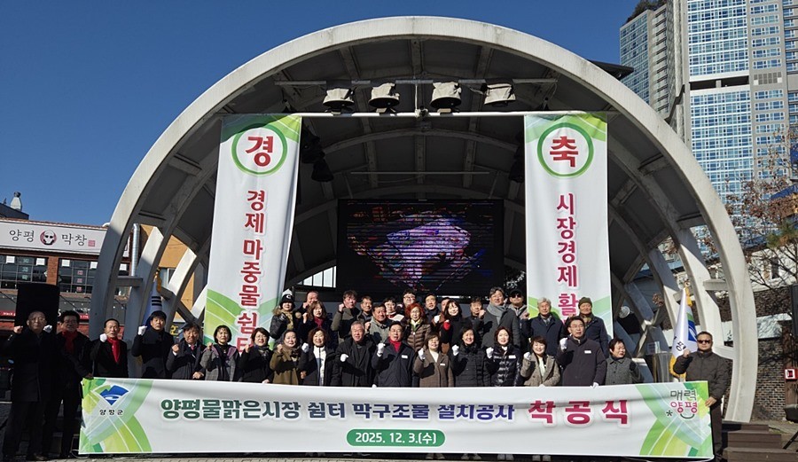 경기 양평군(군수 전진선)은 지난 3일 오전 11시 양평물맑은시장에서 ‘쉼터 막구조물 설치공사’ 착공식을 개최하며 본격적인 공사 추진을 알렸다.