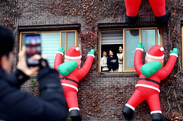 크리스마스 시즌 맞아 청사 외벽에 대형 인형 설치…지나는 시민들 ‘함박웃음’