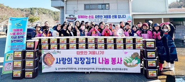 김정화 문덕면장은 “매년 진행되는 김장 나눔은 서로를 보듬는 지역 공동체의 따뜻한 전통”이라며“앞으로도 취약계층 지원과 더불어 나눔 문화 확산을 위한 다양한 봉사를 꾸준히 추진하겠다.”라고 전했다.
