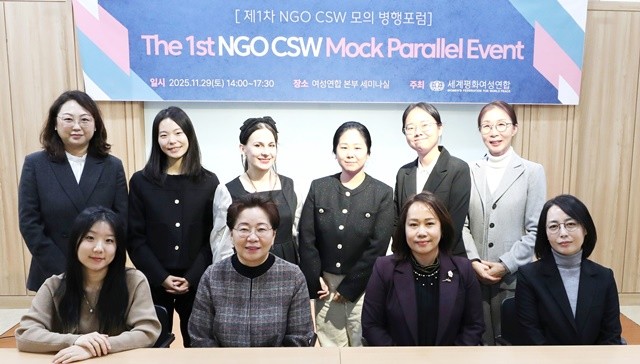 [위키트리 광주전남취재본부 노해섭 기자]한반도 평화와 통일, 여성 인권에 대한 한국 여성들의 목소리가 세계 무대로 향한다. 세계평화여성연합(여성연합)이 2026년 미국 뉴욕에서 열리는 제70차 유엔 여성지위위원회(CSW) NGO 병행포럼(Parallel Forum)에 참가할 여성 발표자들의 역량 강화를 위해, 실전을 방불케 하는 ‘모의 포럼’을 개최하며 본격적인 준비에 나섰다.