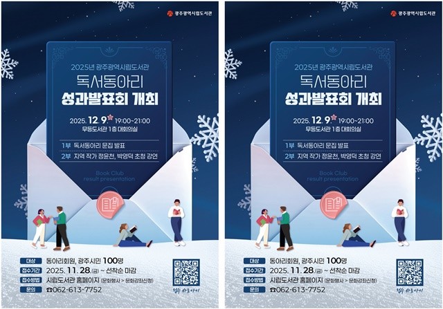 [위키트리 광주전남취재본부 노해섭 기자]광주광역시립도서관은 오는 9일 무등도서관 대회의실에서 ‘2025년 시립도서관 독서동아리 성과발표회’를 개최한다.