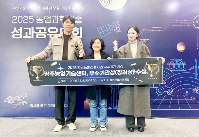 [위키트리 광주전남취재본부 노해섭 기자]광주시농업기술센터는 4일 농촌진흥청에서 열린 ‘농촌진흥사업 성과공유대회’에서 우수기관으로 선정돼 농촌진흥청장상을 수상했다.