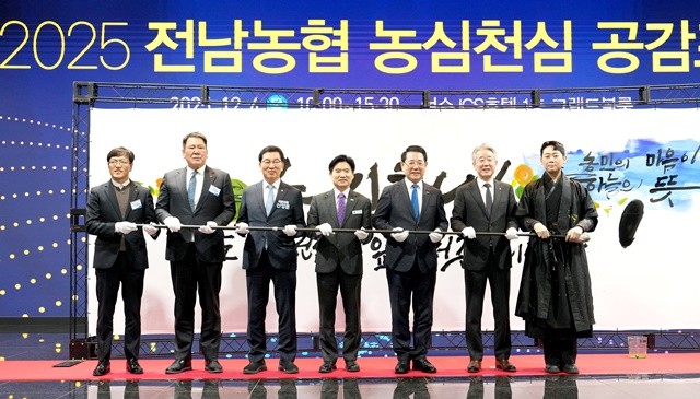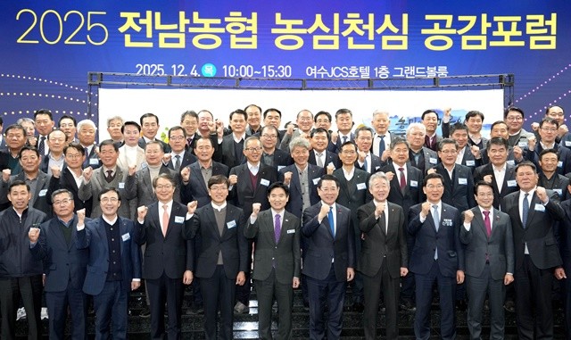 [위키트리 광주전남취재본부 노해섭 기자]김영록 전남도지사가 4일 여수 호텔JCS여수에서 열린 전남농협 농심천심(農心天心) 공감 포럼 행사에서 참석자들과 기념촬영을 하고 있다.