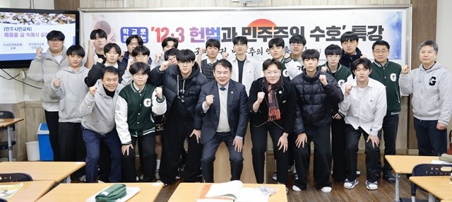 ‘12·3 계엄’ 1년 맞아 광주고서 특강…“교과서 넘어, 삶으로 민주주의 실천해야”