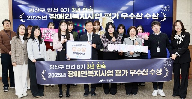 [위키트리 광주전남취재본부 노해섭 기자]광주시 광산구의 ‘장애인 친화 정책’이 3년 연속 대한민국 최고 수준임을 공식적으로 인정받았다. 광산구는 보건복지부가 전국 229개 시군구를 대상으로 실시한 ‘2025년 지자체 장애인복지사업 평가’에서 우수 지자체로 선정되는 쾌거를 이뤘다.