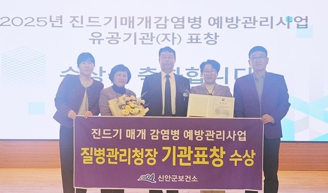 [위키트리 광주전남취재본부 노해섭 기자] 신안군은 12월 5일 질병관리청이 주관한 ‘2025년 진드기 매개 감염병 예방 관리 사업 평가 대회’에서 우수 지자체로 선정되어 질병관리청장 기관 표창을 수상했다고 밝혔다.