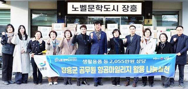 장흥군 공무원들은 이처럼 활용되지 않는 자원을 지역사회에 돌려주자는 데 뜻을 모았다. 122명의 공직자들이 자발적으로 참여해 모은 마일리지는, 항공사 마일리지몰을 통해 전기밥솥, 전기담요, 치약, 화장지 등 어려운 이웃에게 꼭 필요한 실생활 물품 197점(2,055만 원 상당)으로 변신했다.