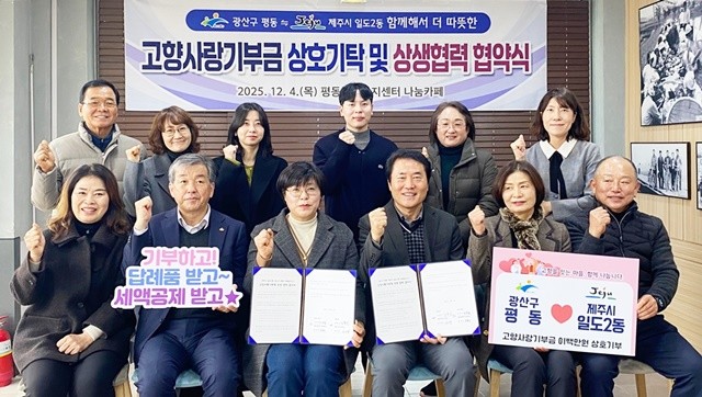 광산구 평동·동곡동-제주시 일도2동, ‘고향사랑 교차기부’로 육지-섬 잇는 상생 다리 놨다