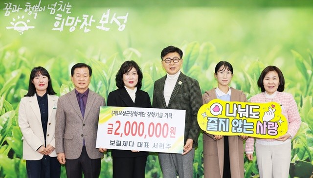 보림제다 서희주 대표는 “우리 보성의 미래를 이끌어갈 학생들을 위해 작게나마 힘을 보탤 수 있어 기쁘다”며 “앞으로도 기업의 성장과 더불어, 지역사회에 더 큰 기여를 할 수 있도록 항상 노력하겠다”고 겸손한 소감을 밝혔다.