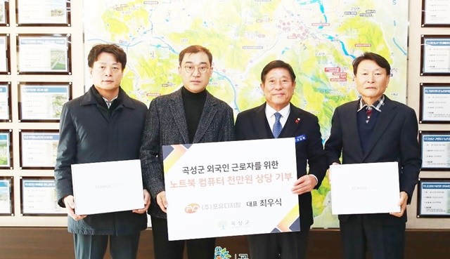 이번 기부는 타국에서 생활하며 여가와 학습 기회가 부족한 외국인 노동자들에게 지역 내 안정적인 정착과 내국인과의 원활한 소통을 지원하기 위한 것으로, 경기도 고양시에서 태블릿PC, 전자칠판 등을 제조하는 포유디지탈은 약 1천만 원 상당의 태블릿PC를 곡성군에 기탁했다. 군은 기부받은 태블릿을 관내 농공단지(석곡·겸면)에서 근무 중인 외국인 노동자들에게 배부했다.