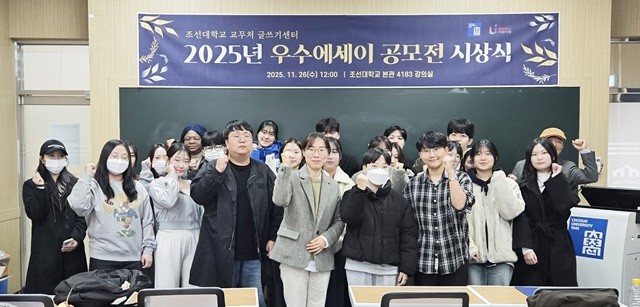 [위키트리 광주전남취재본부 노해섭 기자]조선대학교(총장 김춘성) 교무처 글쓰기센터가 11월 26일 ‘2025 우수에세이 공모전 시상식’을 개최했다. ‘우수에세이 공모전’은 조선대학교 학생들의 글쓰기 능력을 제고하고, 창의력과 통합적 사고를 함양하기 위한 학생 참여 프로그램이다.
