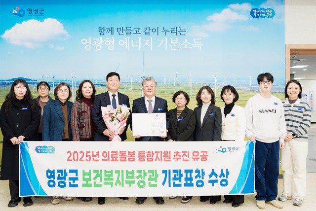 [위키트리 광주전남취재본부 노해섭 기자] 영광군은 12월 5일 보건복지부가 주관한 “2025년 의료·요양·돌봄 통합지원 성과대회”에서 유공 기관으로 선정되어 보건복지부 장관 표창을 수상했다.