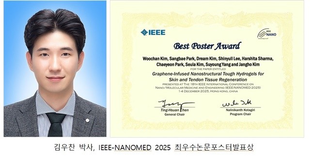 9일 전남대학교에 따르면, 융합바이오시스템기계공학과 김장호 교수 연구팀의 김우찬 박사와 김드림 석사과정생이 최근 홍콩에서 열린 IEEE-NANOMED 2025에서 각각 최고 영예인 ‘최우수 1위 논문발표상’과 ‘우수논문발표상’을 수상했다.