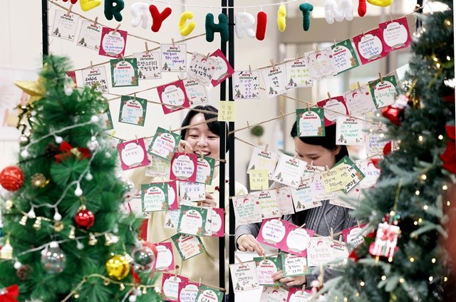 [위키트리 광주전남취재본부 노해섭 기자]9일 광주시 북구 운암도서관 로비에서 직원들이 ‘도서관과 함께하는 크리스마스’ 연말 특별 프로그램으로 도서관 이용객들을 위해 나만의 소원트리 만들기 테마 전시를 기획하고 있다.