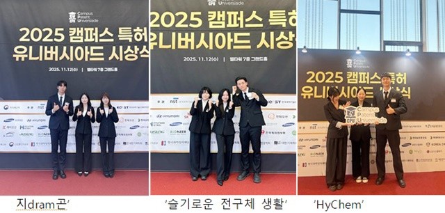 9일 전남대에 따르면, 화학공학부 학생들로 구성된 ‘지DRAM곤’ 팀(지도교수 박종현)이 지식재산청이 주최하고 한국발명진흥회와 4개 유관기관이 공동 주관한 2025 캠퍼스 특허 유니버시아드에서 우수상을 수상했다.