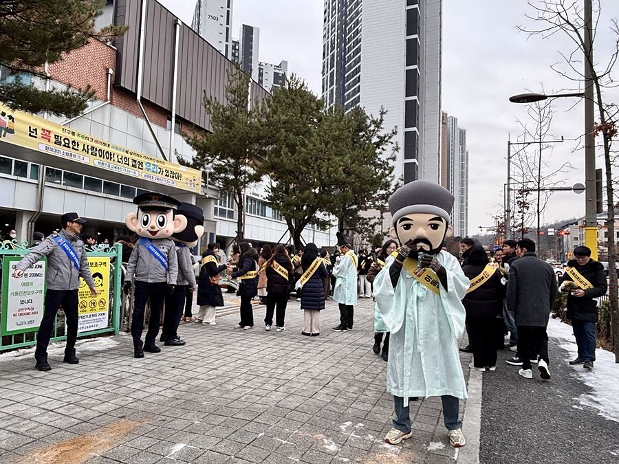 도포를 착용한 홍보 인력은 안전한 횡단보도 이용법을 안내하며, 지역 브랜드와 연계한 교육도 함께 전달해 학생들의 관심과 참여를 유도했다.