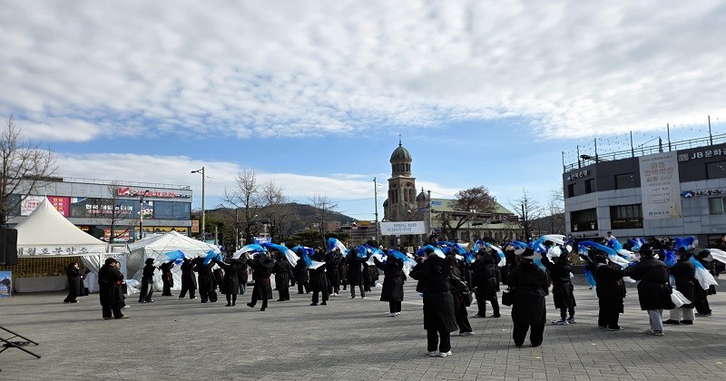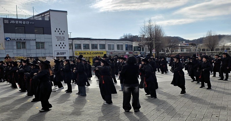 지난 12월 6일(토) 오후 1시, 전주 풍남문광장과 한옥마을 일대가 전북 청년 100명의 열정으로 가득 채워졌다. ‘청년의 물결, 전북을 물들이다’라는 이름으로 열린 이번 플래시몹은 저승사자 복장을 한 청년들이 전통과 현대가 공존하는 공간을 배경으로 창의적인 퍼포먼스를 선보이며 시민과 관광객들의 뜨거운 호응을 얻었다.