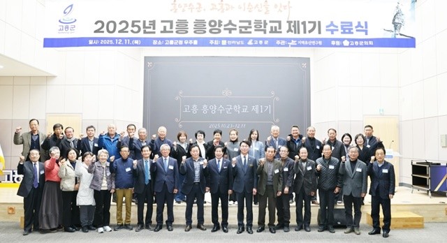 [위키트리 광주전남취재본부 노해섭 기자]고흥군(군수 공영민)은 조선시대 임진왜란 해전 승리에 기여한 흥양수군의 활동과 역사적 의미를 학술적으로 조명하는 교육 프로그램인 ‘2025년 고흥 흥양수군학교 제1기’를 성공적으로 마무리하고 수료식을 개최했다고 밝혔다.
