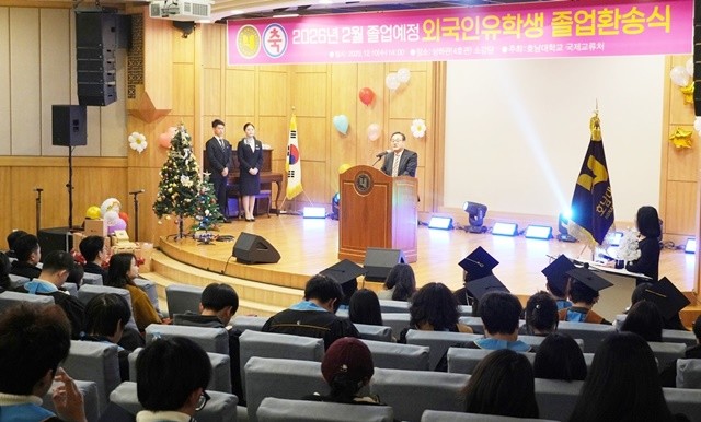 [위키트리 광주전남취재본부 노해섭 기자]호남대학교 국제교류처(처장 손완이)는 12월 10일 4호관 소강당에서 2026년 2월 졸업예정 외국인 유학생 환송식을 개최하고, 곧 졸업을 앞둔 외국인 유학생들의 새로운 출발을 축하했다.