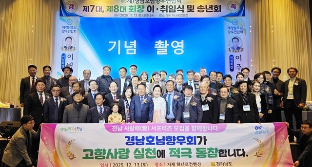 [위키트리 광주전남취재본부 노해섭 기자]전라남도(도지사 김영록)는 13일 경남 거제 하나로컨벤션에서 열린 경남호남향우연합회 제8대 회장 취임식에 참석해 고향사랑 실천 캠페인을 펼치며 향우회와의 교류와 협력을 강화했다.
