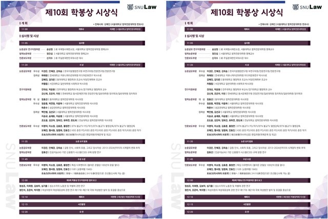 제10회 학봉상 시상식은 지난 12월 3일 오전 11시, 서울대학교 호암교수회관 목련홀에서 개최됐다. 이번 수상작은 서울대학교 법학전문대학원 학봉상 공식 홈페이지를 통해 확인할 수 있다.