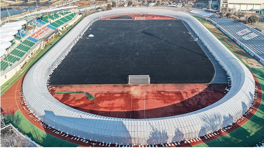 “한겨울에도 달린다” 포천시, 비닐 터널 씌운 '동계 육상트랙' 개장