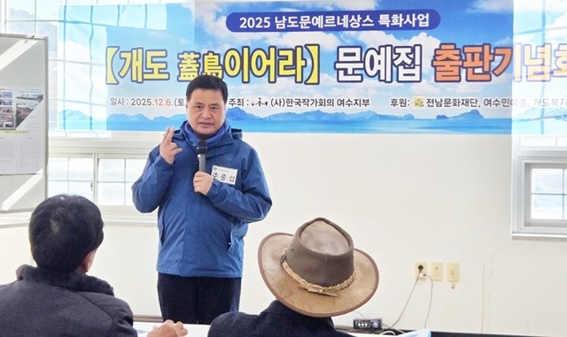 2025 남도문예르네상스 특화사업으로 추진된 이번 행사는 여수작가회의(회장 우동식) 회원으로 활동 중인 시인, 수필가, 평론가, 역사학자 등 27명의 작가들이 지난 1년간 수차례 걸쳐 개도의 사람들과 문화, 자연을 탐방하며 느낀 점을 문예작품으로 형상한 단행본 문예집 출판을 기념하기 위해 개최되었으며, 개도 주민 등 80여 명이 참석했다.