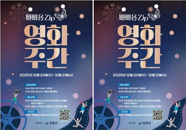 [위키트리 광주전남취재본부 노해섭 기자]장흥 빠삐용Zip(옛 장흥교도소)에서 오는 12월 20일(토)과 21일(일) 이틀간 ‘영화주간’ 영화 상영회를 개최한다.이번 상영회는 지역 내 다양한 세대가 함께 영화를 보고 이야기를 나누는 문화적 장을 만들기 위해 기획됐다.