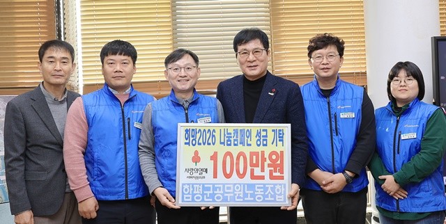 함평군은 16일, 함평군공무원노조가 연말연시를 맞아 지역 내 소외계층을 돕기 위한 성금 100만 원을 기탁했다고 밝혔다.