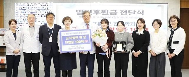 이날 ‘2025년 플리마켓 수익금 및 헌혈증 전달식’ 행사에는 호남대학교간호학과에서 하윤주 학과장, 문정은 교수, 이연후 교수, 이윤하 교수, 4학년 이하정 학회장, 전남대학교병원에서 정신 원장, 김영민 사무국장, 한재영 대외협력실장. 최명이 간호부장, 김현주 간호교육팀장이 참석했다.