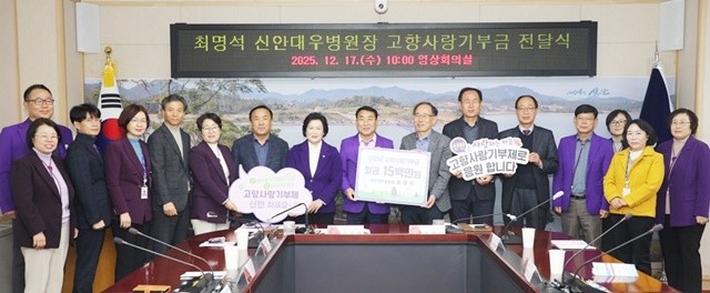 [위키트리 광주전남취재본부 노해섭 기자] 신안군(군수 권한대행 김대인)은 최명석 신안대우병원장이 고향사랑기부금 1,500만 원을 군에 전달했다고 17일 밝혔다. 이 기부금은 최 병원장이 최근 수상한 ‘김우중 의료인상’ 상금 중 일부다.