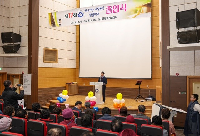 [위키트리 광주전남취재본부 노해섭 기자]강진군 ‘찾아가는 여성농업인 한글학교(교장 서달호)’가 1년간의 학사 일정을 마무리하고 지난 18일 강진군 농업기술센터 대강당에서 제17회 졸업식을 개최했다.