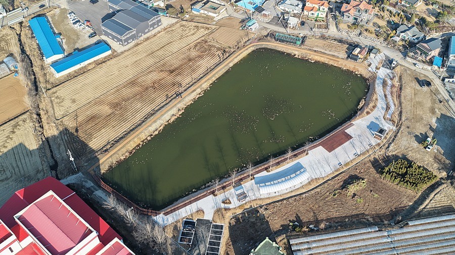 주요 시설로는 50m 구간의 건강맨발둘레길을 비롯해 나무바닥 전망대, 산책로, 화장실, 주차장, 쉼터, 중앙광장 등이 마련됐으며, 곳곳에 식재를 더해 수변 공간과 자연스럽게 어우러지도록 조성했다.