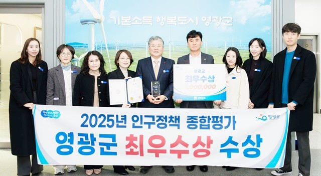 [위키트리 광주전남취재본부 노해섭 기자] 영광군은 2025년 전라남도가 주관한 「전라남도 인구정책 우수 시‧군 평가」에서 ‘최우수상’을 수상했다고 밝혔다.