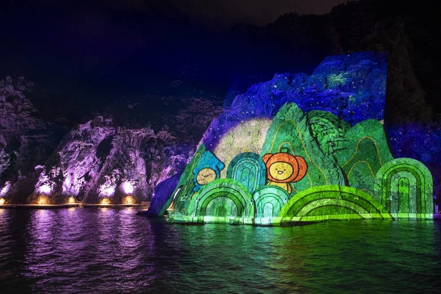 미디어파사드는 건물 외벽이나 구조물, 자연 지형에 영상을 투사해 스크린처럼 활용하는 예술적 미디어 표현 방식으로, 도동항 우안 산책로 일원의 천연 암반 사면을 대형 스크린으로 활용한다.