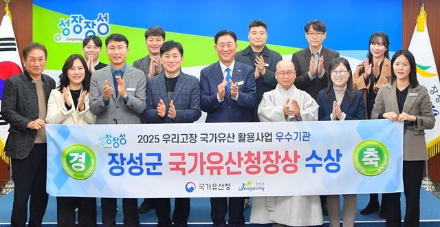 [위키트리 광주전남취재본부 노해섭 기자]장성군이 국가유산청 공모사업인 ‘우리고장 국가유산 활용사업’ 전통산사 문화유산 활용사업 분야에 2년 연속 우수기관으로 선정되며 국가유산청장상을 받았다.