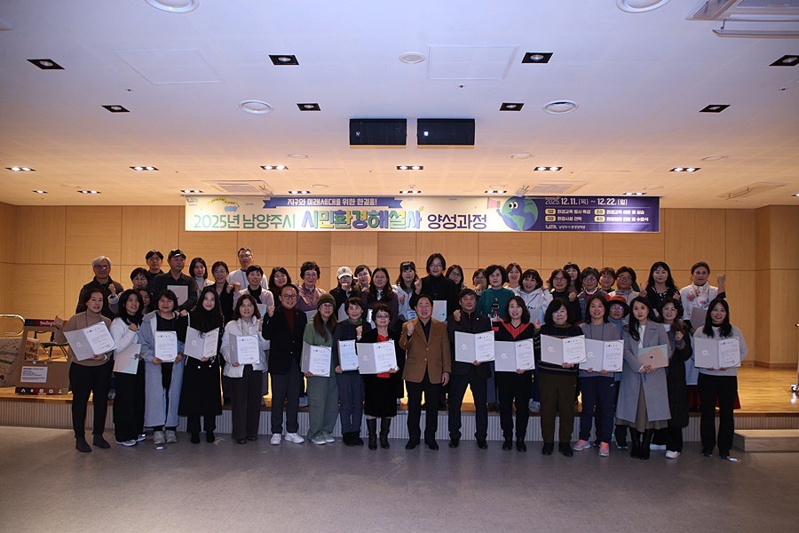 경기 남양주시(시장 주광덕)는 22일 금곡양정행정복지센터 6층 다목적공연장에서 기후위기 대응과 지역사회 환경교육의 핵심 역할을 수행할 ‘2025년 시민환경해설사 양성과정’ 수료식을 개최했다.