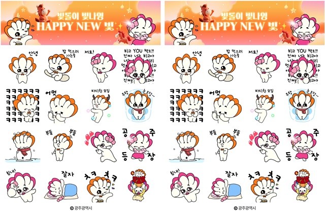 [위키트리 광주전남취재본부 노해섭 기자]밋밋한 ‘새해 복 많이 받으세요’라는 문자 메시지는 이제 그만! 올 연말연시에는, 광주광역시(시장 강기정)가 선물하는 귀염뽀짝 ‘빛돌이·빛나영’ 이모티콘으로 센스있게 마음을 전해보는 건 어떨까요?