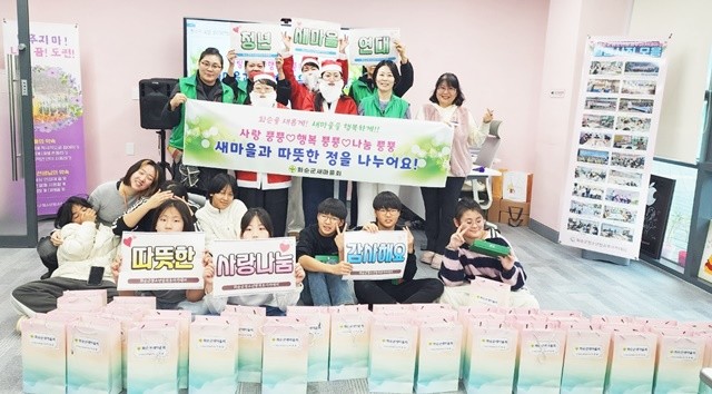이번 후원은 화순군새마을회(회장 주창범)와 화순군 청년새마을연대(회장 김미란)가 지역사회와 청소년이 함께하는 연말 나눔 실천의 일환으로 마련했다. 회원들은 직접 산타 복장을 하고 청소년방과후아카데미를 방문해 준비한 후원 물품을 전달하며 따뜻한 정을 나눴다.
