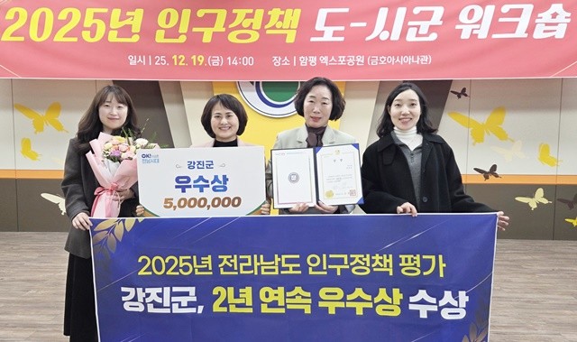 2025년 인구정책 참여와 발굴을 대상으로 시행한 이번 평가는 전남도 22개 시군을 대상으로 인구문제 극복 노력도, 추진 성과, 발표심사를 통해 진행되었다.