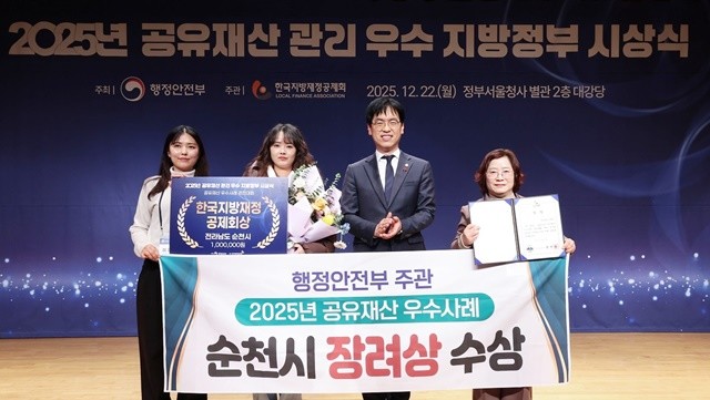 [위키트리 광주전남취재본부 노해섭 기자]순천시는 지난 22일 행정안전부 주관으로 정부서울청사에서 열린 ‘2025년 공유재산 우수 지방단체 시상식’에서 공유재산 우수사례 경진대회 부분 ‘장려상’을 수상했다고 밝혔다.
