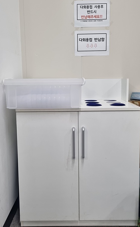 다회용컵은 신관 민원실 내에 비치돼 있으며, 민원인들이 안심하고 사용할 수 있도록 위생 관리도 철저히 하고 있다.