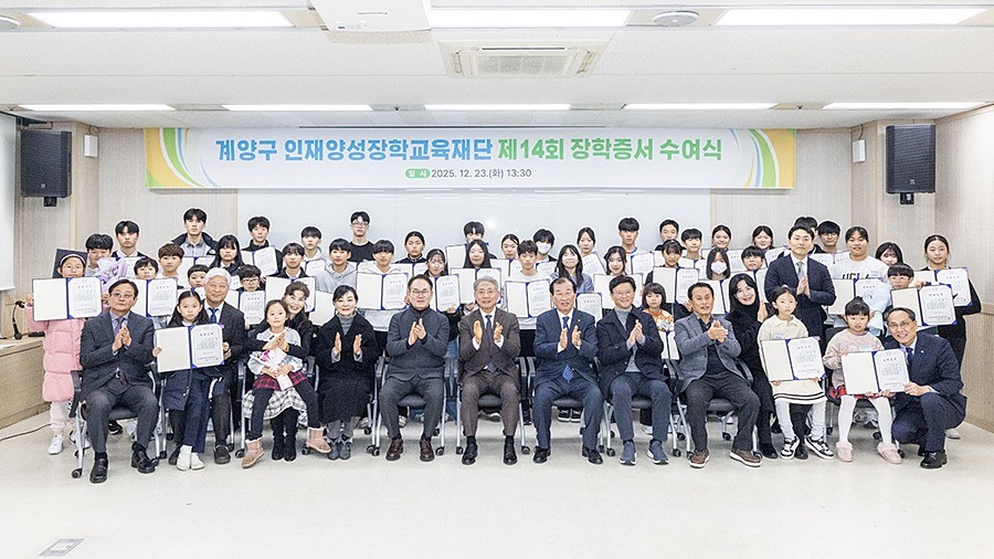 올해 하반기에 14회째 장학생을 선발한 계양구 인재양성장학교육재단은 2019년부터 총 921명에게 약 10억 6,200만 원의 장학금을 지원했으며, 2026년 상반기 장학생 모집은 내년 3월에 공고할 계획이다.