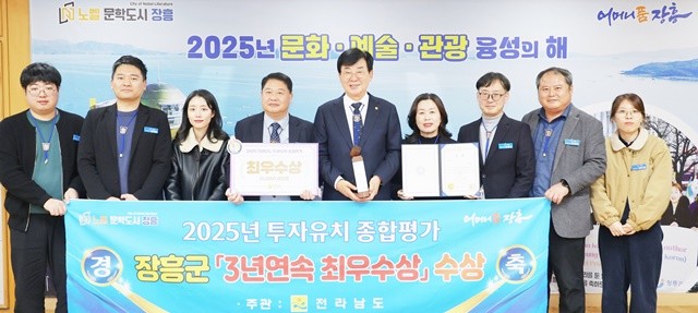 장흥군은 지난 24일 열린 ‘2025 전라남도 일자리·경제한마당’에서, 22개 시·군 중 가장 높은 평가를 받아 투자유치 부문 ‘최우수상’을 수상했다.