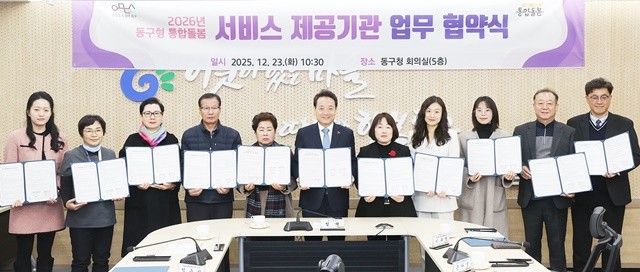[위키트리 광주전남취재본부 노해섭 기자] 광주시 동구는 지난 23일 구청에서 동구지역자활센터 등 11개 서비스 제공기관과 업무협약을 체결하고, 2026년 ‘동구형 통합돌봄’ 사업을 본격 추진한다고 밝혔다.