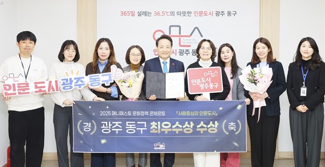 [위키트리 광주전남취재본부 노해섭 기자]광주시 동구는 2025 매니페스토 문화정책 콘체르토에서 ‘문화활동 활성화 분야’ 최우수상을 최근 수상했다고 밝혔다. 수상 사례는 ‘365일 36.5℃ 인문도시 광주 동구’ 정책이다.