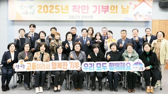 [위키트리 광주전남취재본부 노해섭 기자]고흥군(군수 공영민)은 지난 23일 군청 팔영산홀에서 올해 마지막 공식 기부 행사인 ‘2025년 착한 기부의 날’ 행사를 개최하고, 한 해를 따뜻한 나눔으로 마무리했다.