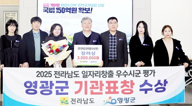 [위키트리 광주전남취재본부 노해섭 기자]영광군은 12월 24일 여수시 엑스포 컨벤션센터에서 열린 ‘전라남도 일자리․경제 한마당’ 행사에서, 2025년 전라남도 일자리 창출 우수 시․군 평가 ‘장려상’을 수상했다.
