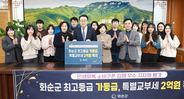 [위키트리 광주전남취재본부 노해섭 기자]화순군(군수 구복규)은 24일 행정안전부가 주관한 ‘민생회복 소비쿠폰 집행 우수 지자체 평가’에서 최우수 지자체로 선정돼 특별교부세 2억 원을 확보했다고 밝혔다.